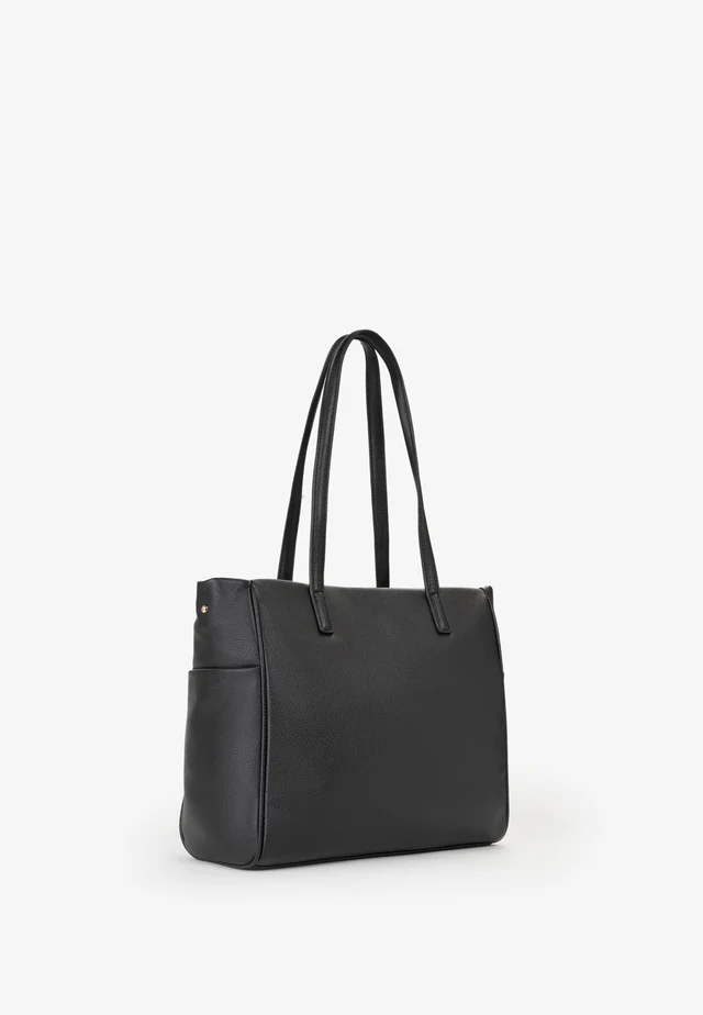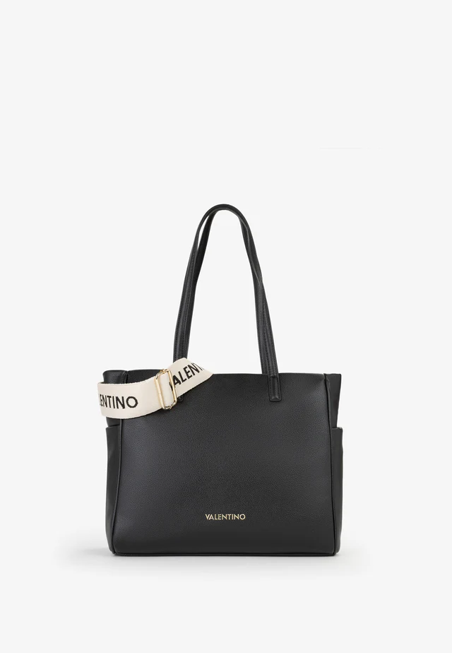 Shopping con tracolla in nastro, logata e logo in lettere di gomma sul davanti.
