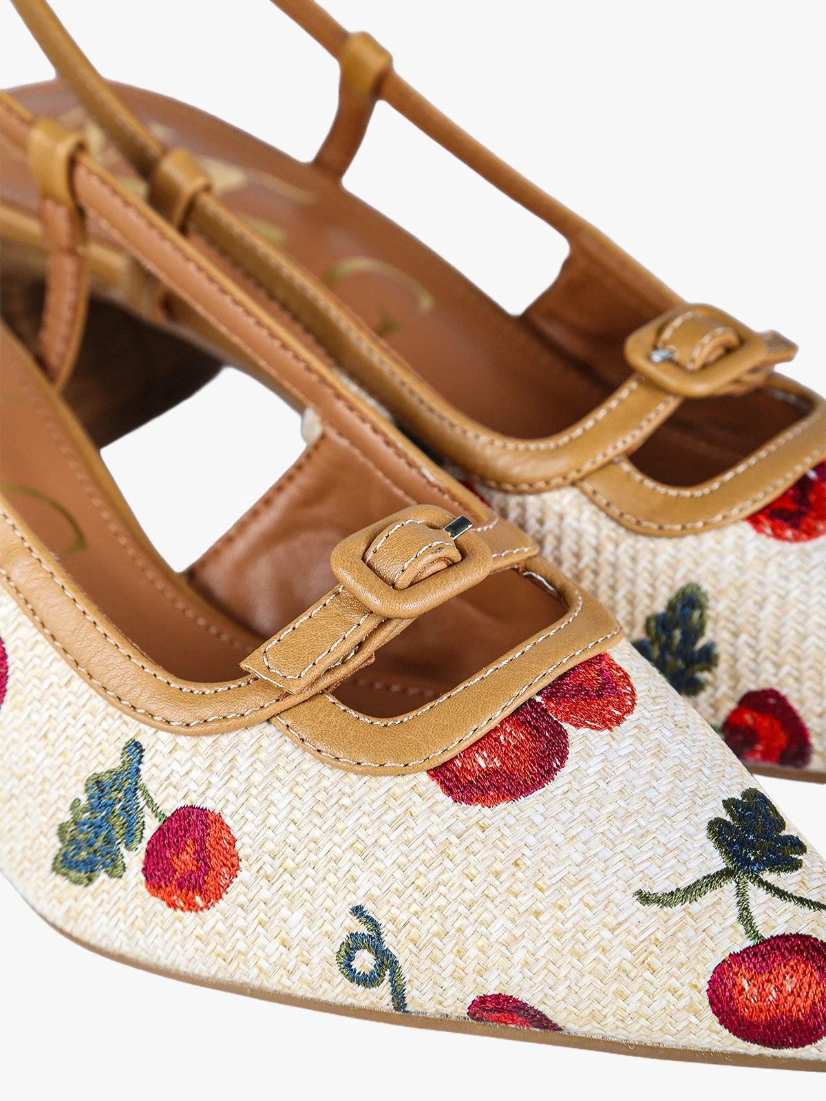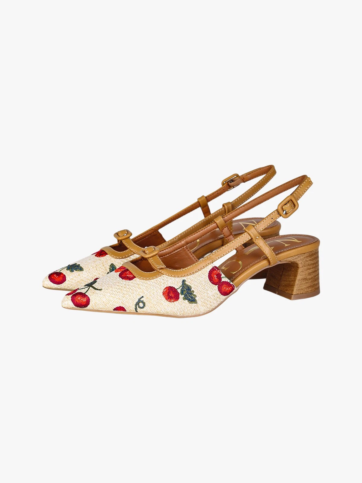 Decolletè donna aperto dietro con cinturino alla caviglia tacco basso quadrato .