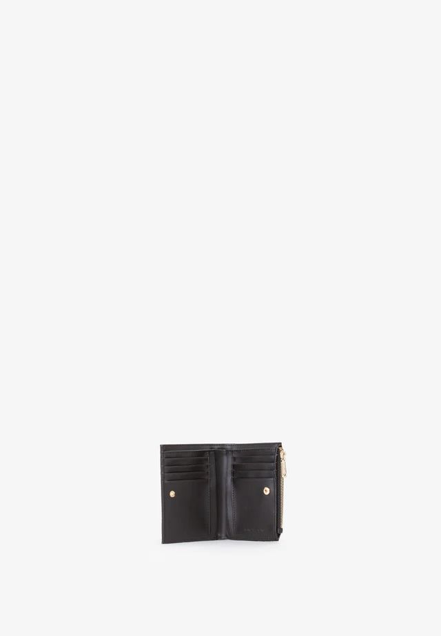 Portafoglio con logo in lettere di gomma sul davanti.